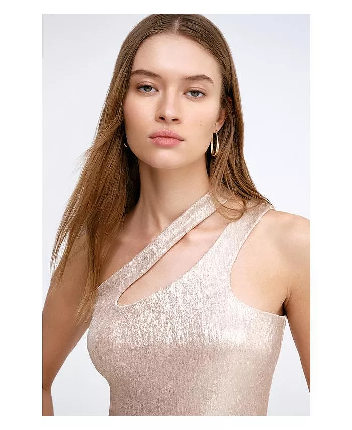 Топ Siren Metallic от Marcella пленяет с первого взгляда. Двусторонние бретели и одно плечо образуют вырез на плече, спускающийся вниз спереди и сзади. Модель Siren из мерцающего европейского трикотажа с сетчатой ​​подкладкой, гладкая и эластичная, комфортно подчеркивает фигуру.