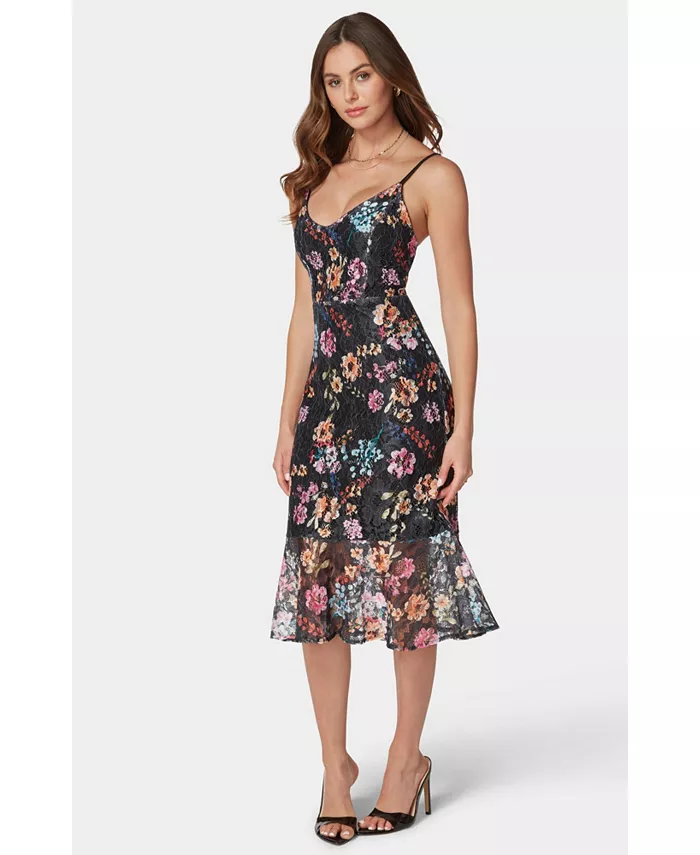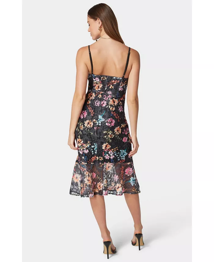 Женское платье миди с кружевом и принтом Bebe, мультиколор