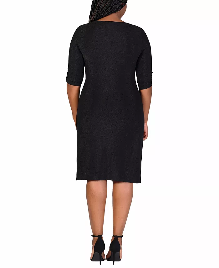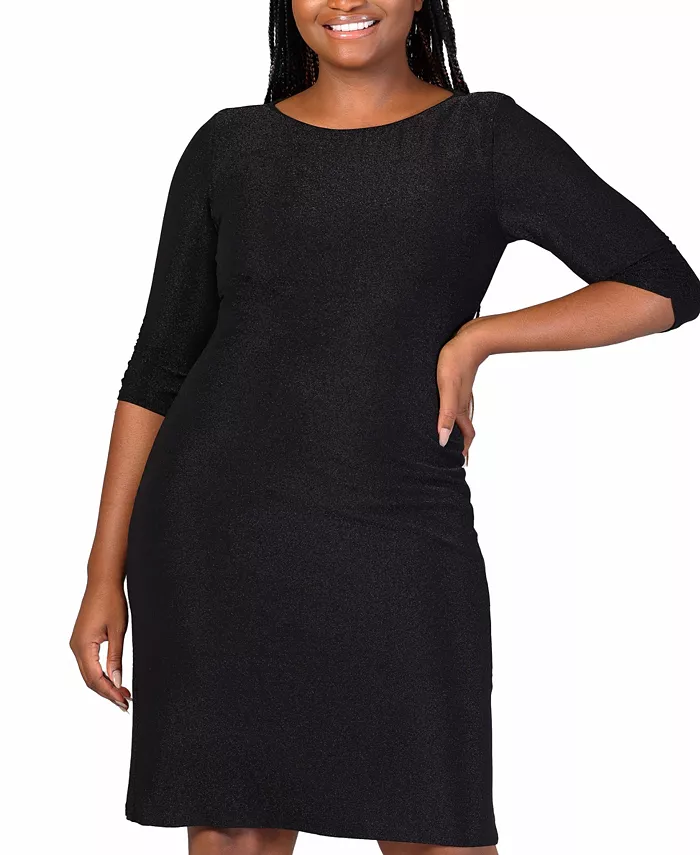 Привлеките всеобщее внимание на вашем следующем мероприятии в нашем облегающем мини-платье размера плюс с рукавами до локтя и мерцающим эффектом. Платье изготовлено из комфортного трикотажа с металлическим блеском и обеспечивает облегающий крой, подчеркивающий ваши изгибы. Элегантные рукава до локтя с рюшами добавят изысканности, а длина мини добавит игривости и кокетливости. Это платье, доступное в различных цветовых вариантах, идеально подходит для вечеринок, вечеринок и особых случаев. Будьте стильной и сияющей в этом потрясающем, притягивающем взгляд коктейльном платье.