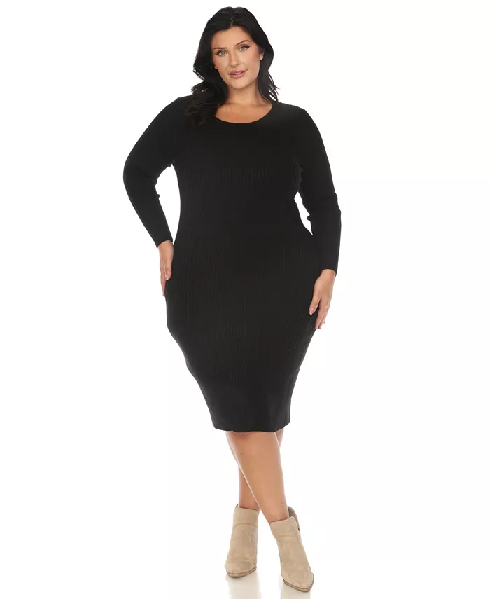 Платье-свитер миди в рубчик больших размеров White Mark, черный