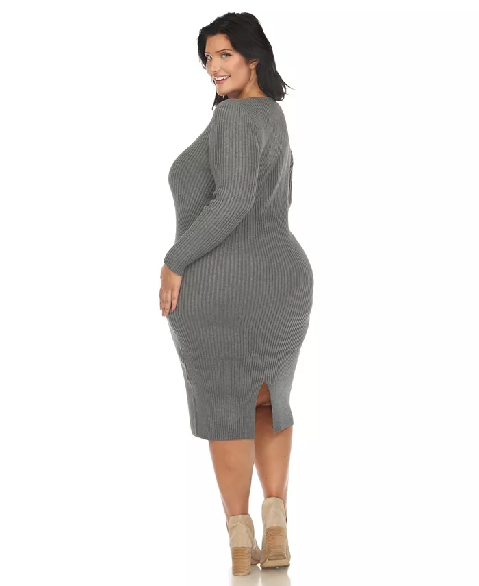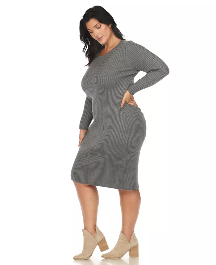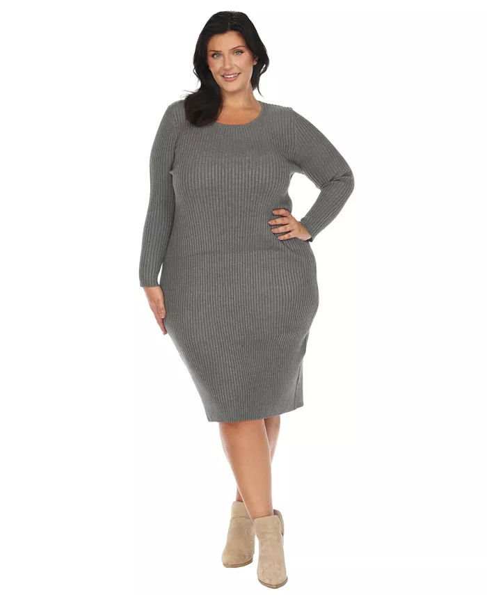 Платье-свитер миди в рубчик больших размеров White Mark, серый