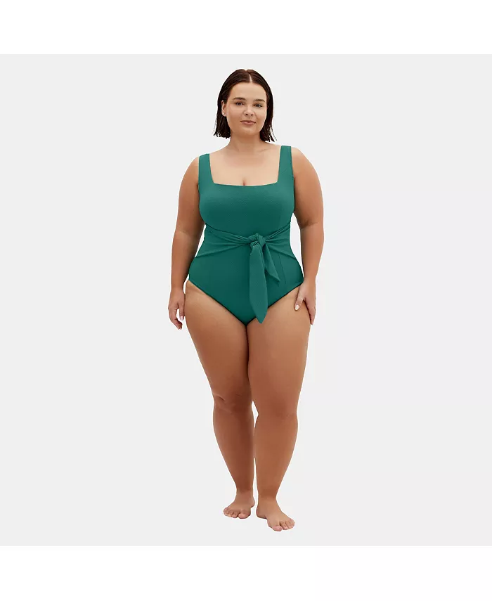 Купальник Plus Size Sardinia Tie Front 1 Piece CITY CHIC, зеленый