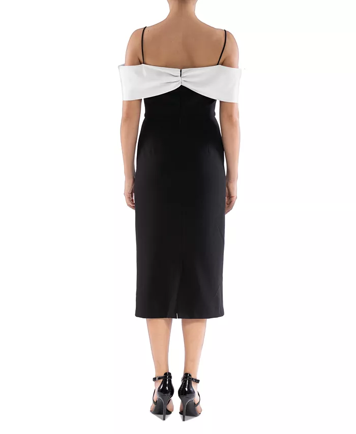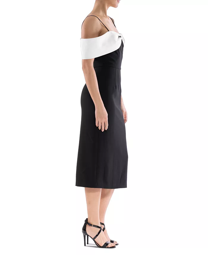 Контрастный бант на вырезе придает изысканность и элегантность этому безупречно элегантному платью миди от Julia Jordan.
