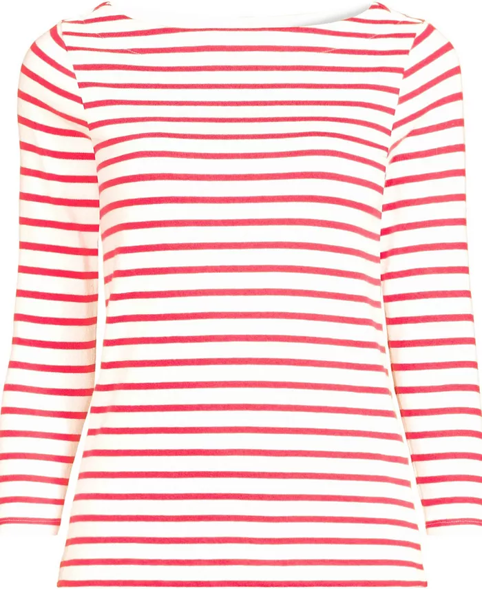 Прочная, дышащая ткань из чистого хлопка Фасон «лодочка» Рукава длиной три четверти Отделка ткани, устойчивая к образованию катышков и выцветанию 100% хлопок. Машинная стирка. Импортный. Трикотаж/Хлопок/Джерси Можно стирать в стиральной машине Импортный
