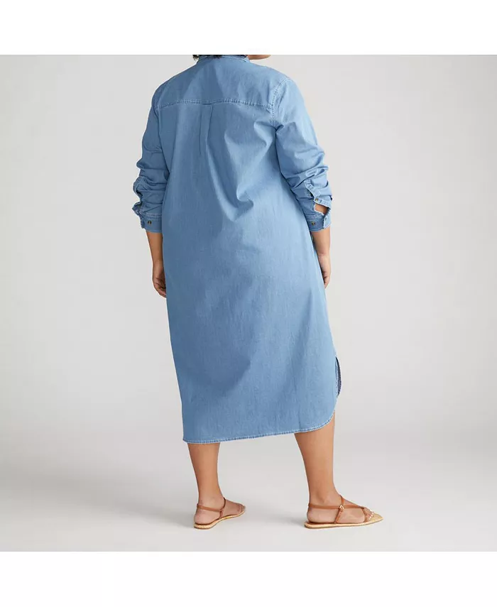 Женское платье-рубашка Odeon из эластичного хлопка-шамбре Universal Standard, синий 22 904₽