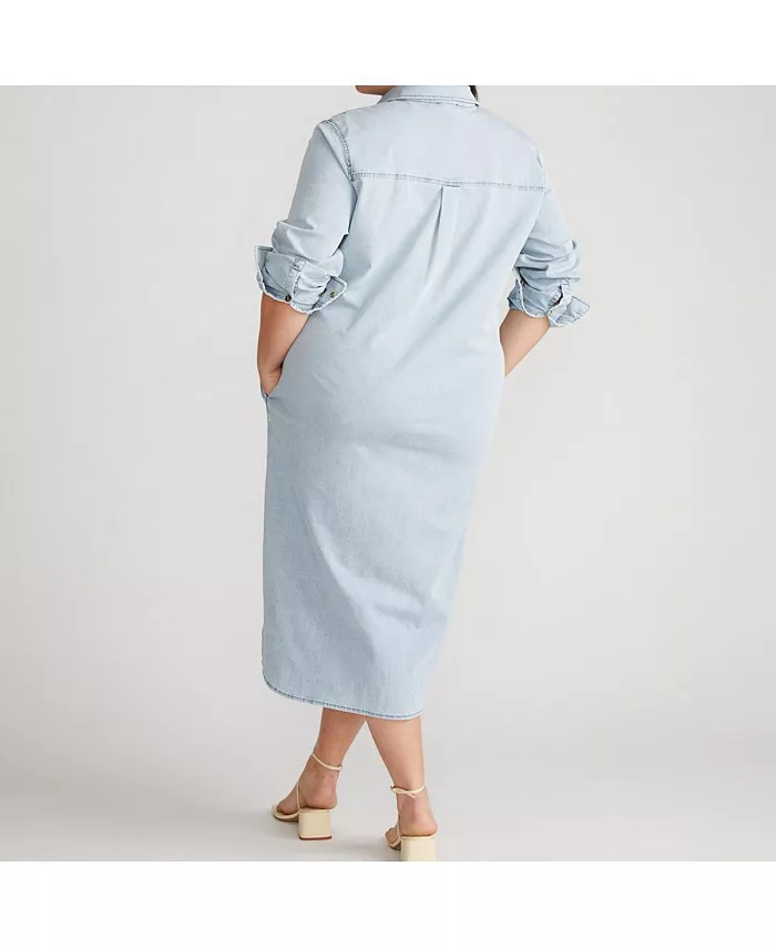 Женское платье-рубашка Odeon из эластичного хлопка-шамбре Universal Standard, синий 22 904₽
