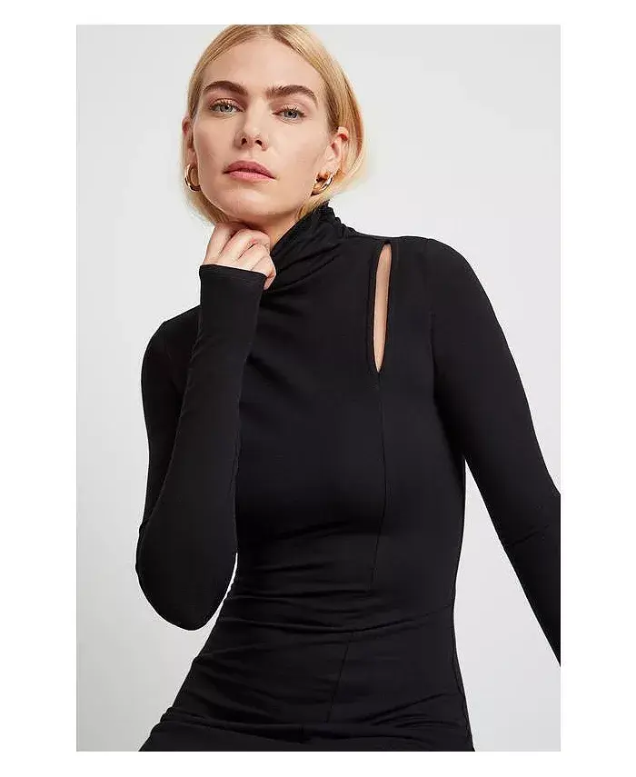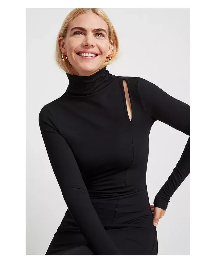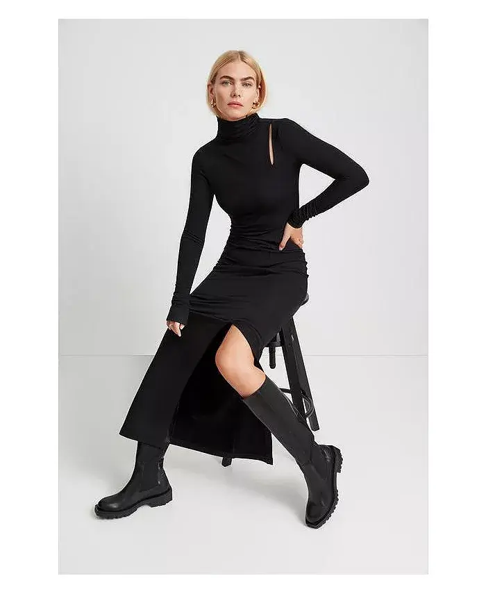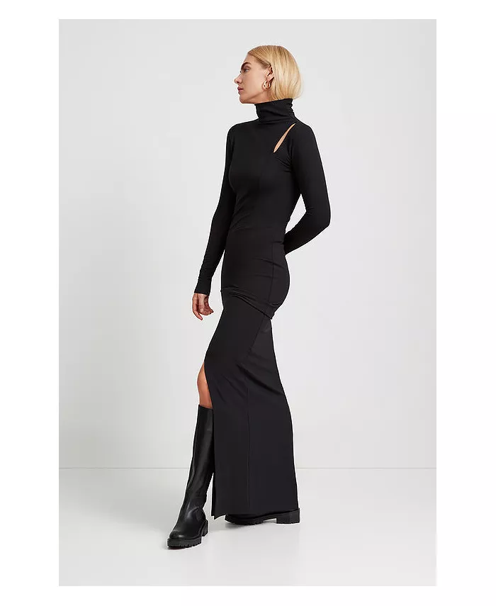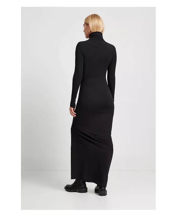 Приблизительно 62 дюйма в длину Импортный Очень длинные рукава Водолазка с асимметричным вырезом. Приталенный, средней эластичности Приталенный фасон в области груди, талии и бедер. Длина макси. Прямой силуэт. Слегка эластичный