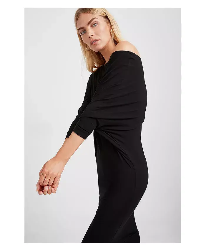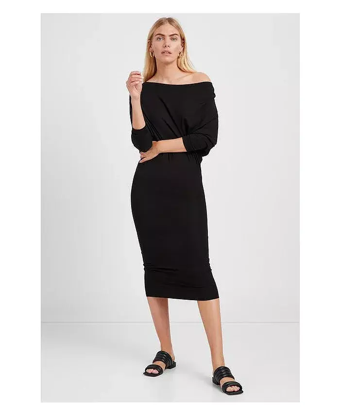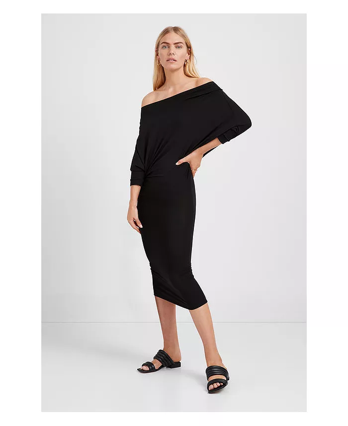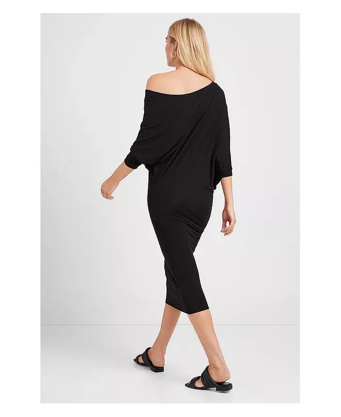 Платье Julia от Marcella - асимметричное миди из шелковистого эластичного европейского джерси Tencel с рукавами «летучая мышь». Широкий вырез можно варьировать в зависимости от настроения: от выреза «лодочка» до платья на одно плечо или с открытыми плечами. Свободный верх и свободные рукава создают мягкую драпировку, а приталенная юбка-карандаш.