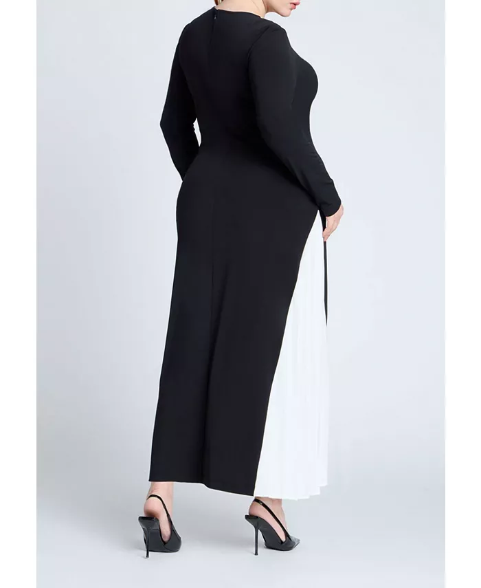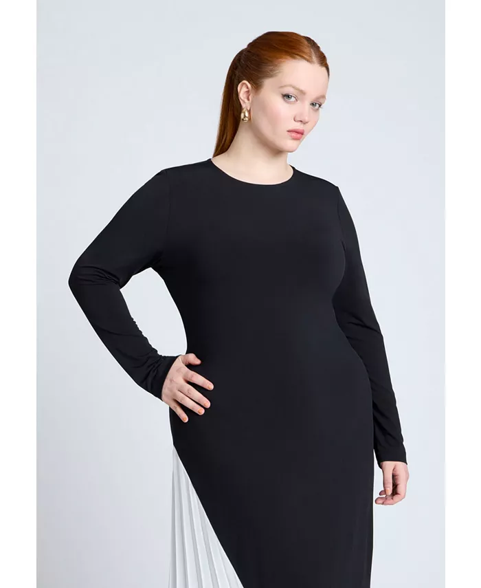 95% полиэстер, 5% спандекс. Облегающий лиф со свободной юбкой. Без подкладки. Надевается на застёжку, круглый вырез горловины. Длинный приталенный рукав. Длина миди: 18 см от самой высокой точки плеча. Основа из высокоэластичного трикотажа, неэластичная тканая плиссированная вставка. Плиссированная вставка по боковым швам. Машинная стирка в холодной воде на щадящем режиме с похожими цветами. Использовать только отбеливатель без хлора при необходимости. Сушка в стиральной машине при низкой температуре. Гладить при низкой температуре при необходимости.