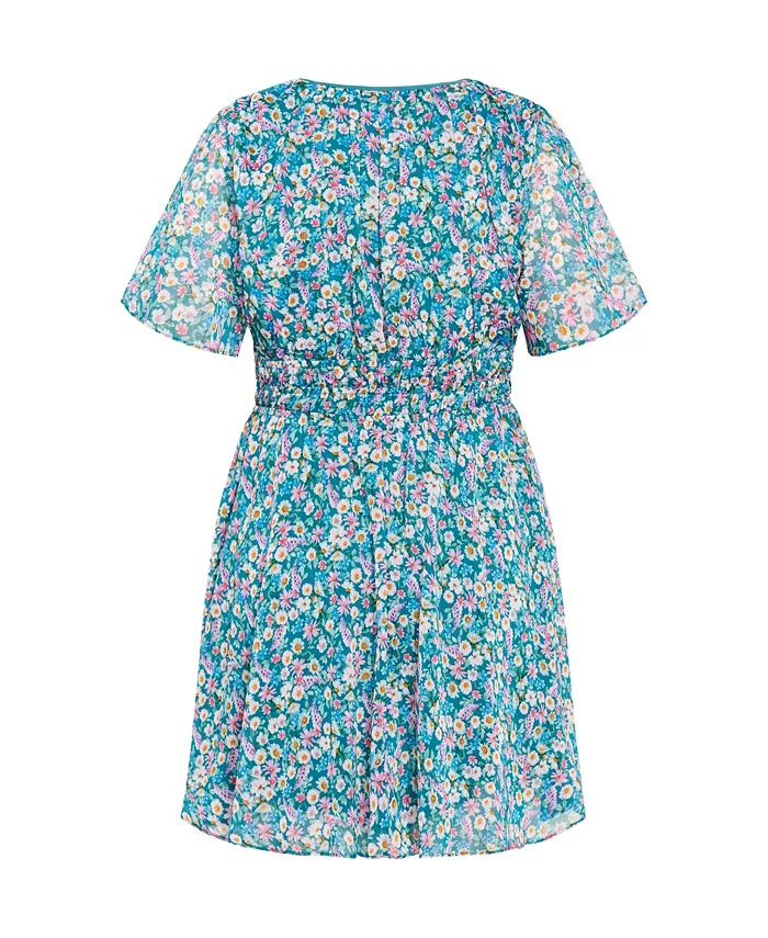 На модели платье City Chic размера S/16, рост 178 см. Бюст: облегающий. Талия: приталенная. Бёдра: свободный крой. Длина: это платье размера plus size - мини. Обхват по центру спины: 93 см/36,5 дюйма.