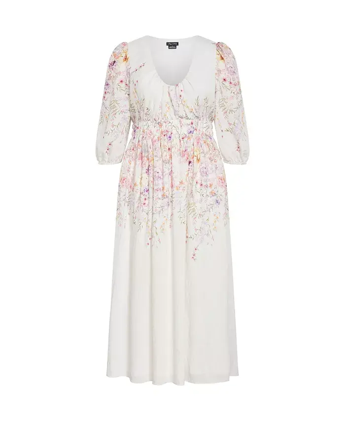 Платье макси размера плюс с принтом Keyla CITY CHIC, белый