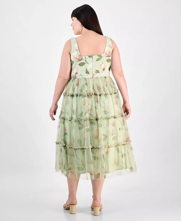 Это трехъярусное платье миди с квадратным вырезом и цветочным принтом, украшенное нежными оборками, - прекрасный выбор от Aidan by Adrianna Papell.