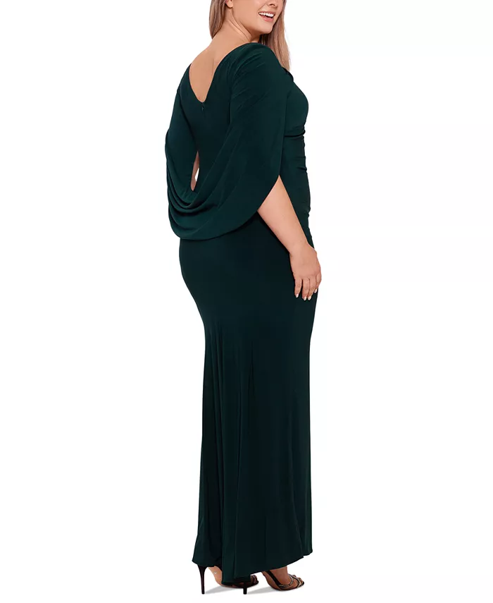 Betsy & Adam придают этому великолепному платью больших размеров актуальный в настоящее время элемент - рукава, соединяющиеся на спине, что создает эффект драпировки.