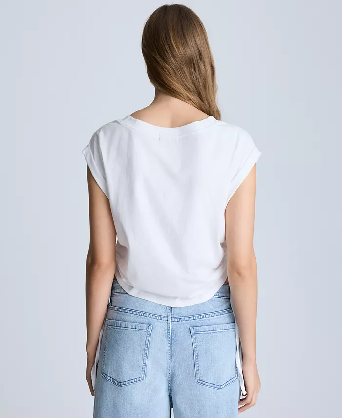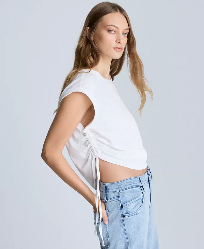 Создайте модный образ с этим укороченным топом со сборками от Kenneth Cole.