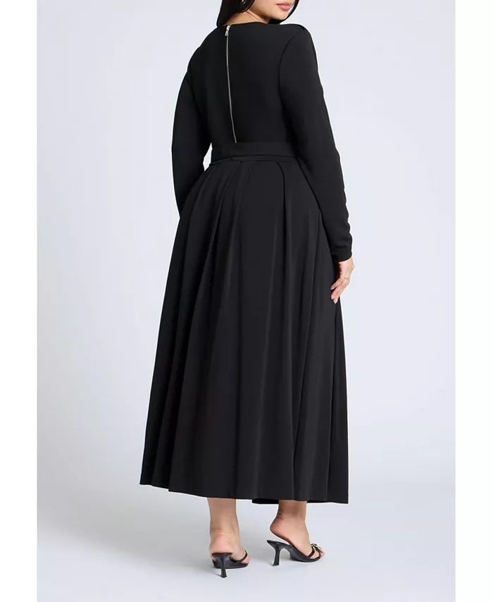 95% полиэстер, 5% спандекс. Облегающий лиф со свободной юбкой. Юбка в складку. Круглый вырез горловины. Длинный приталенный рукав. Длина миди: 135 см от самой высокой точки плеча для размера 18. Трикотаж средней эластичности. Машинная стирка в холодной воде на деликатном режиме с похожими цветами. При необходимости используйте только отбеливатель без хлора. Не сушить в стиральной машине. Сушить в разложенном виде на горизонтальной поверхности. Гладить при низкой температуре при необходимости.
