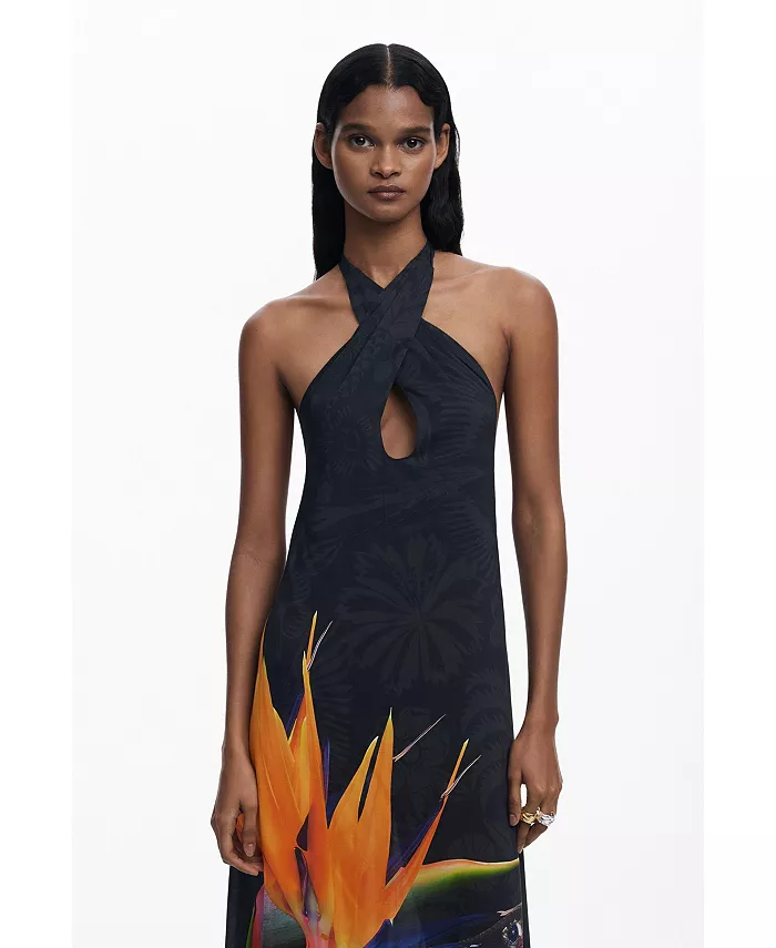 Женское длинное платье с принтом Desigual, черный