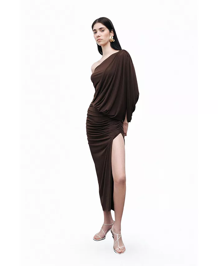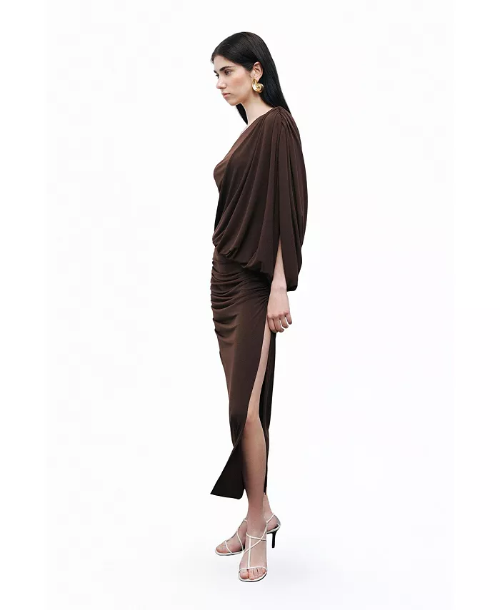Женское платье макси с драпировкой NOCTURNE, коричневый