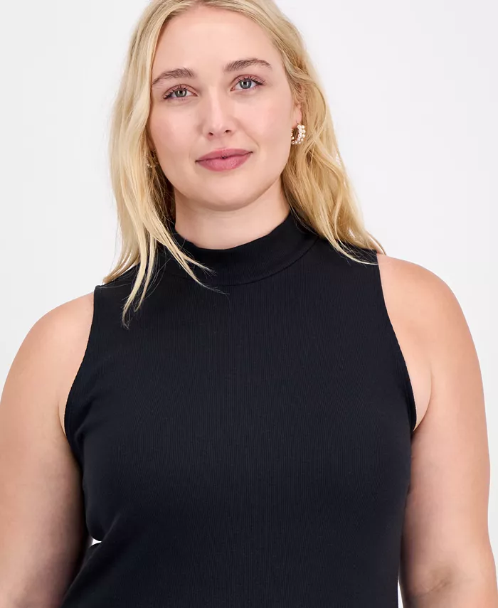 Платье миди Trendy Plus Solid с воротником-стойкой и без рукавов On 34th, черный