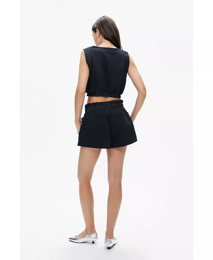 Почувствуйте роскошь в этих мини-шортах с высокой талией и широкими штанинами.