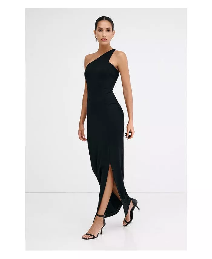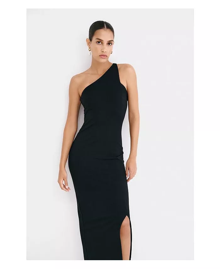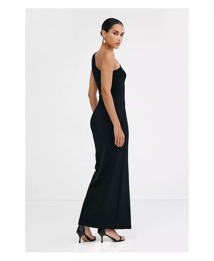В платье Elora от Марселлы классический гламур сочетается с геометрической строгостью. Платье выполнено из европейского понте, имеет свободный силуэт, обнажая плечи, диагональный вырез и высокий разрез до бедра. Структурные швы подчеркивают фигуру, а потайная молния сбоку и застёжка на крючок подчеркивают фигуру.