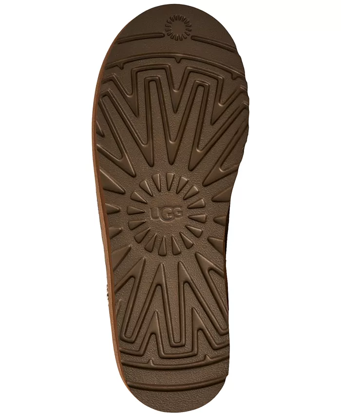 Круглый носок Наденьте Подкладка UGGplush Легкая подошва Логотип UGG, нанесенный методом горячего тиснения Верх из замши; 17-миллиметровая шерсть UGGplush, TENCEL лиоцелл, подкладка из полиэстера; 17-миллиметровая стелька из шерсти UGGplush, TENCEL лиоцелл; стелька из пеноматериала; подошва из ЭВА или подошва из ЭВА Treadlite от UGG Импортный