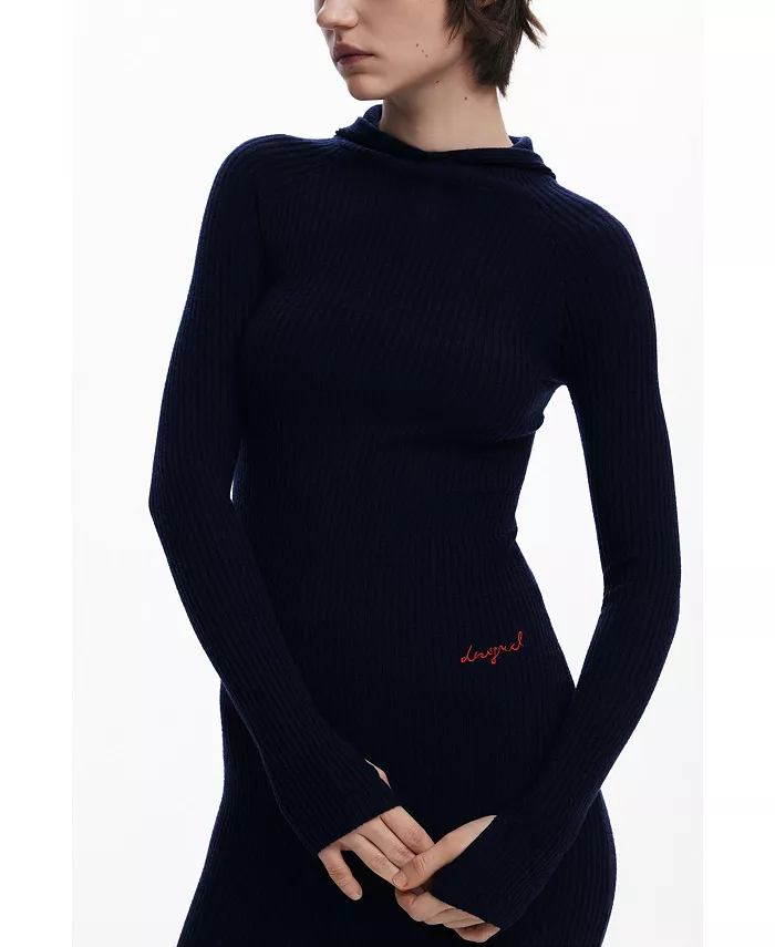 Женское приталенное платье с капюшоном Desigual, синий