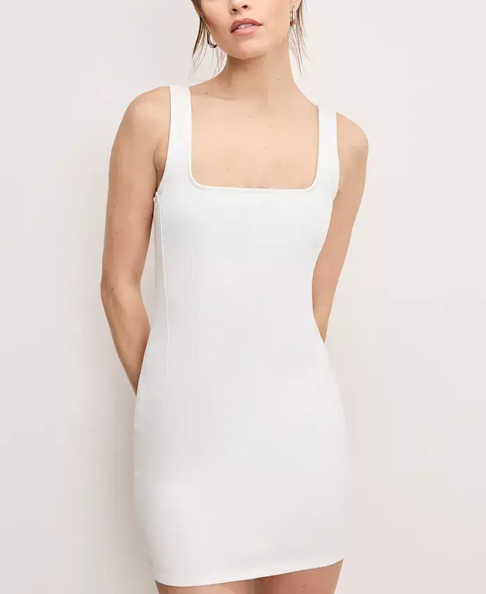 Создайте элегантный образ в этом мини-платье из эластичного денима от Good American, которое облегает фигуру.