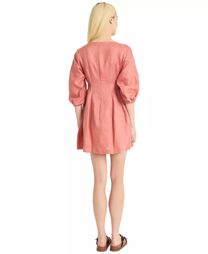 Женское льняное мини-платье длиной до локтя Luxely, розовый