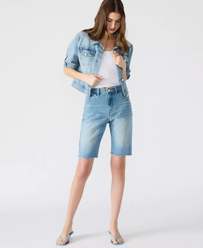 Джинсовые шорты Стива Мэддена имеют удлиненный внутренний шов, как у бермуд, и необработанные края с бахромой, которые со временем становятся только лучше.