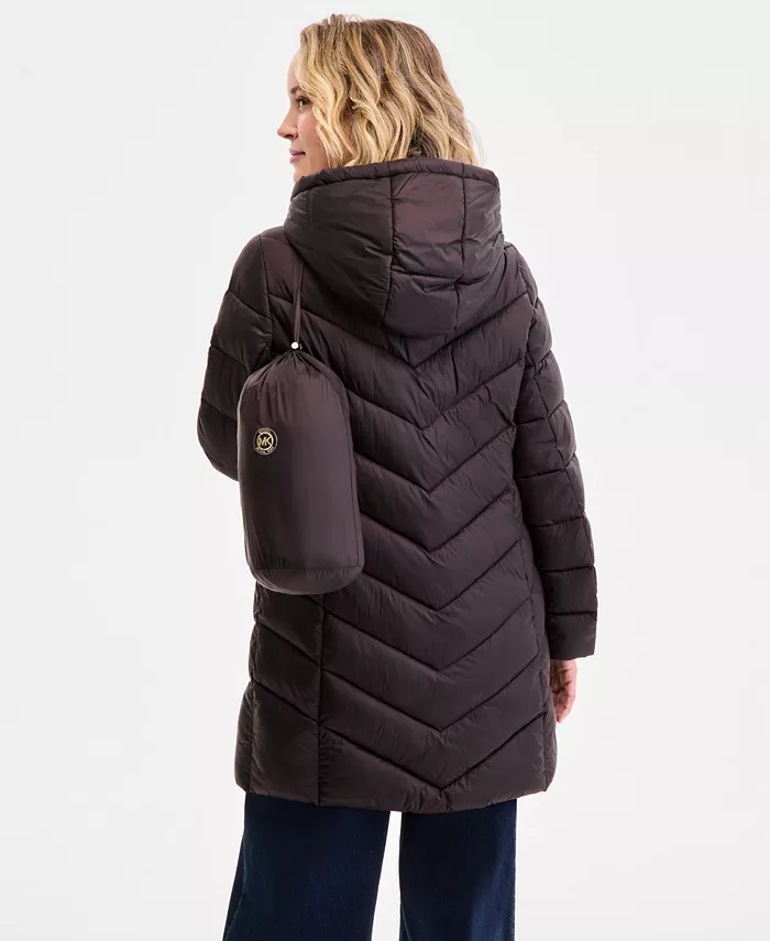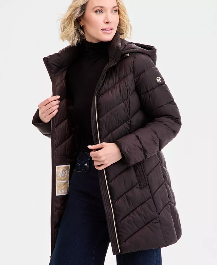Компактное стеганое пальто с капюшоном Michael Kors, коричневый