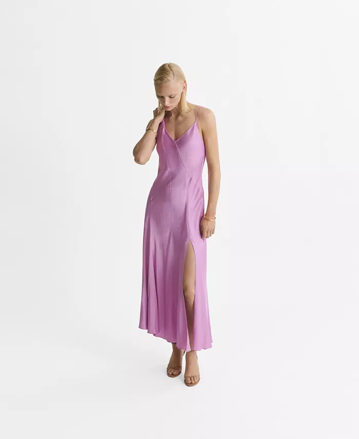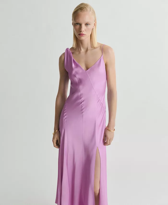 Женское асимметричное атласное платье MANGO, фиолетовый