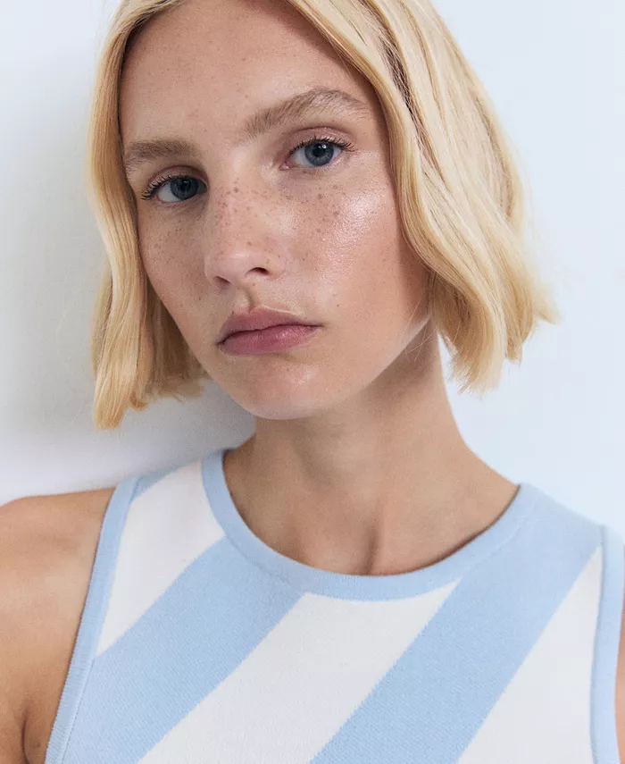Короткое трикотажное платье от Mango отличается обтекаемым силуэтом. Это короткое платье прямого кроя без рукавов и широкими бретелями.