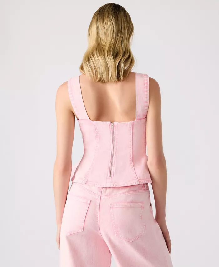 Красивый джинсовый топ от Steve Madden, фасон пеплум, с квадратным вырезом, застежкой-молнией сзади и широкими бретелями для дополнительного комфорта.