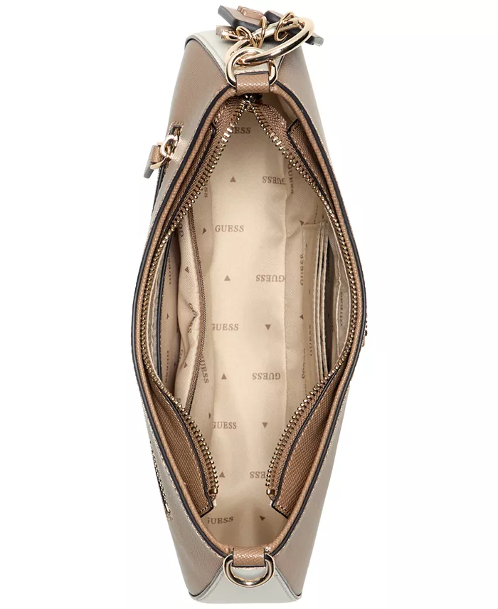 Идеального размера, классическая и универсальная, сумка через плечо Noelle с застежкой-молнией сверху от GUESS станет желанным дополнением к любой коллекции аксессуаров.