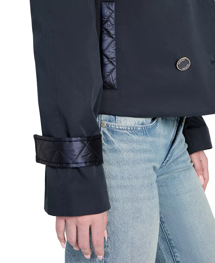 Стеганая отделка придает немного игривости этому укороченному двубортному тренчу от GUESS с воротником-стойкой.
