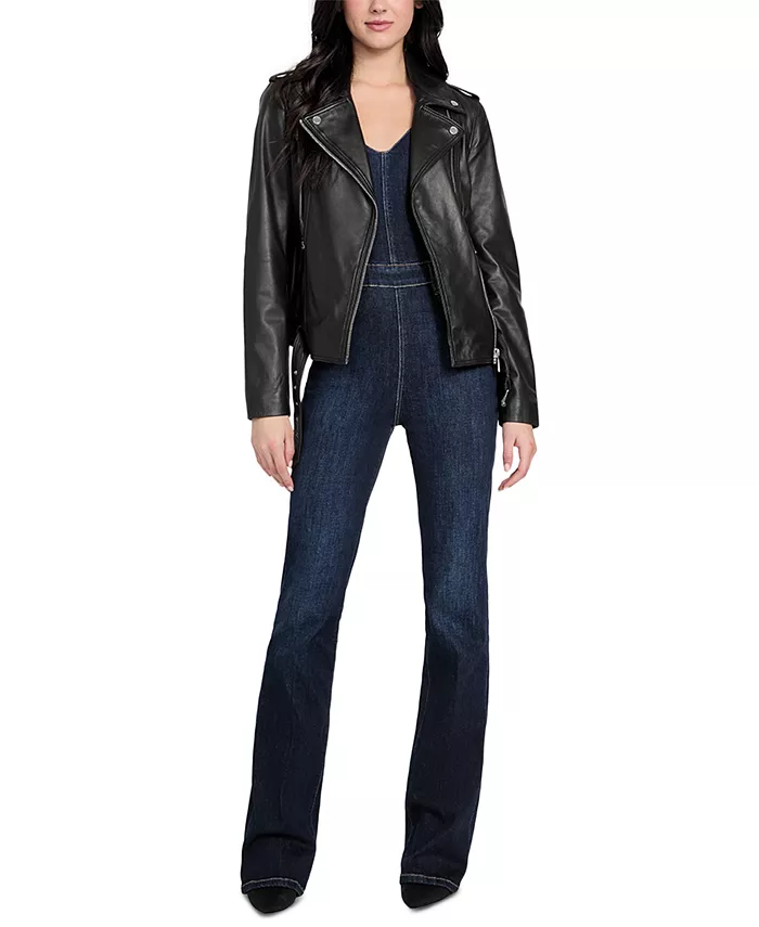 По-настоящему шикарная модель от GUESS: эта кожаная байкерская куртка отличается асимметричной застежкой-молнией спереди и ремнем по низу.