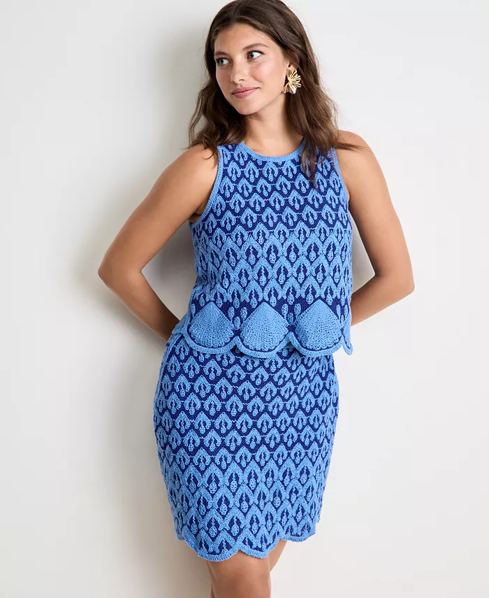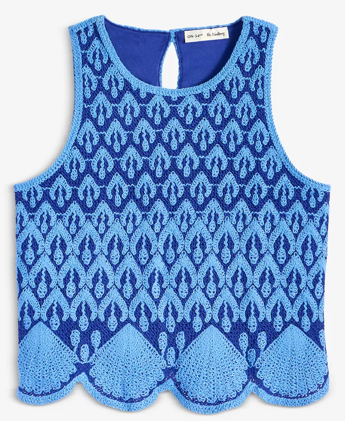 Этот топ от On 34th, выполненный в стиле 60-х, идеально впишется в ваш современный гардероб. Он связан крючком и имеет фестончатый край. Эта модель входит в эксклюзивную коллекцию, созданную совместно с удостоенным наград художником по костюмам Аликс Фридберг. Вдохновением послужила её работа над сериалом «Пальма Рояль» на Apple TV+.