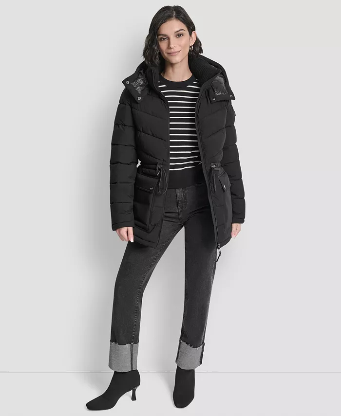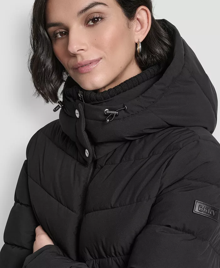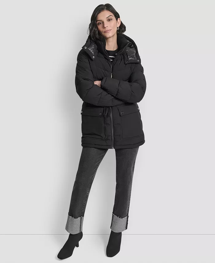 Женский пуховик-анорак с капюшоном Shine DKNY, черный