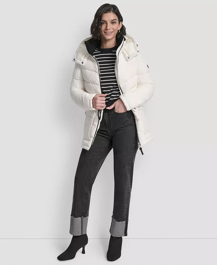 Женский пуховик-анорак с капюшоном Shine DKNY, белый