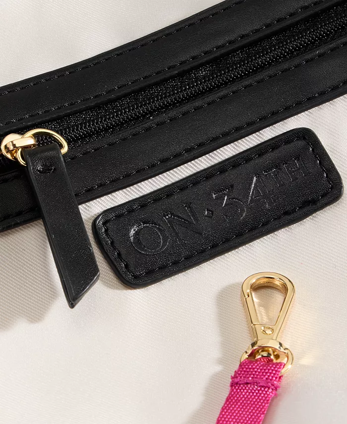 Золотистая внешняя фурнитура; внутренний накладной карман, карман на молнии и карабин для ключей