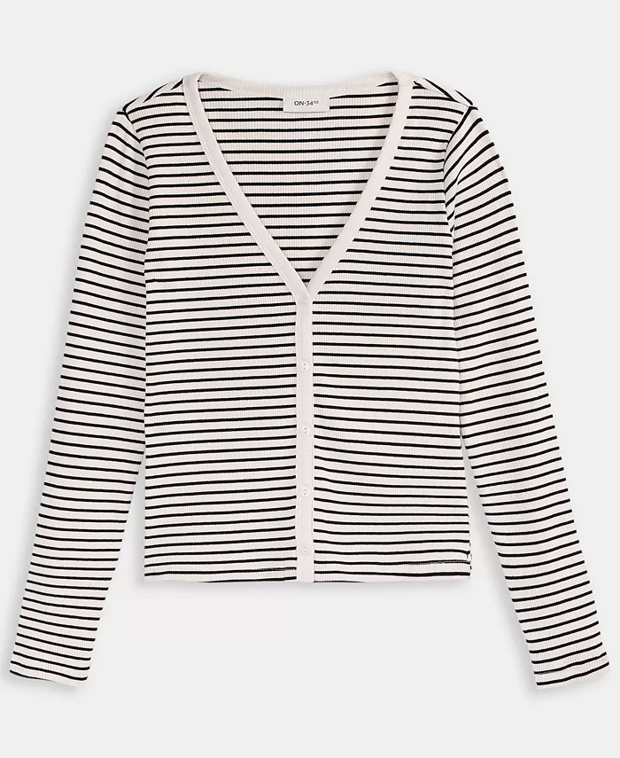 Женский кардиган в рубчик в полоску On 34th, белый