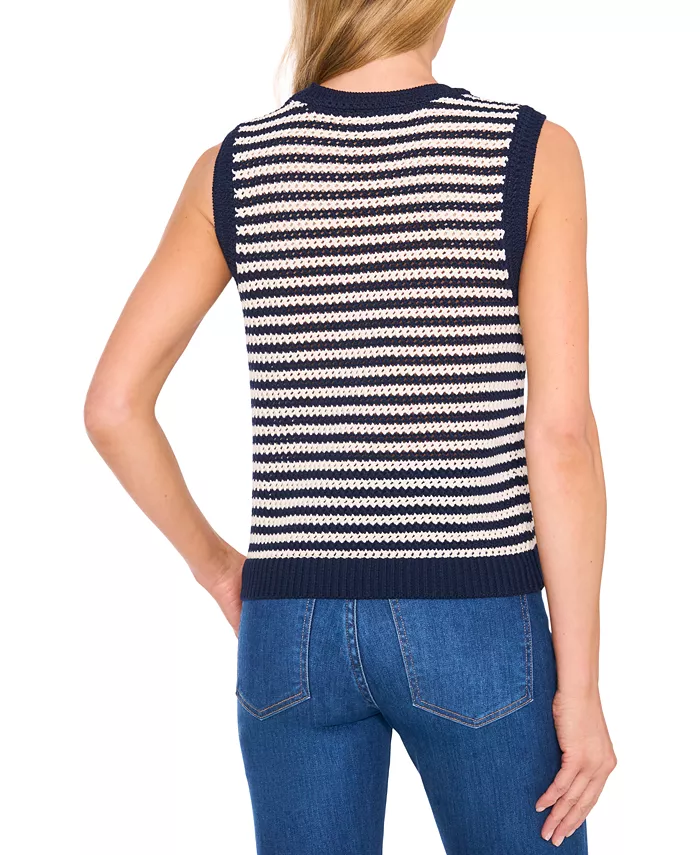 Морская тематика становится элегантной в этом полосатом трикотажном свитере без рукавов от CeCe. О БРЕНДЕ: CeCe - это современный лайфстайл-бренд, вдохновленный романтическим взглядом на повседневность, подчеркнутым вкусом, остроумием и динамичностью.