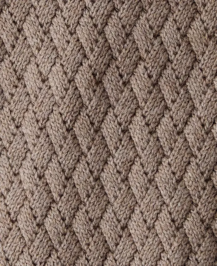 Свитерная вязка; плетение «рогожка»; пуговицы из искусственного дерева