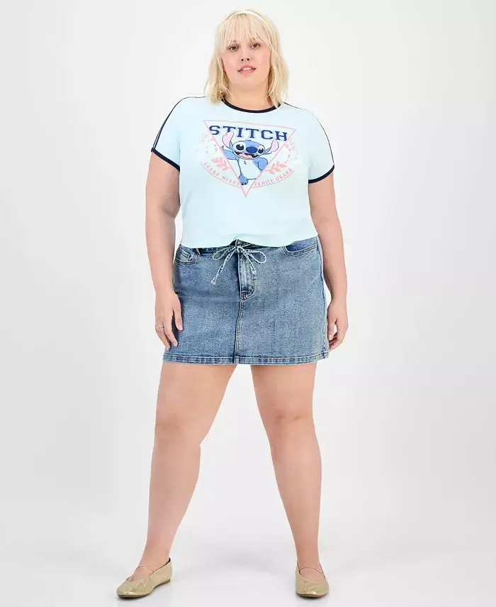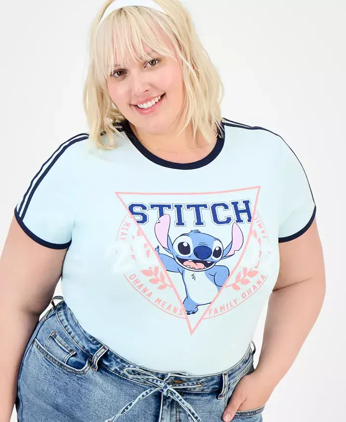 Классический дизайн от Disney, эта подростковая футболка больших размеров с отделкой в ​​спортивном стиле и очаровательным рисунком Стича на груди.