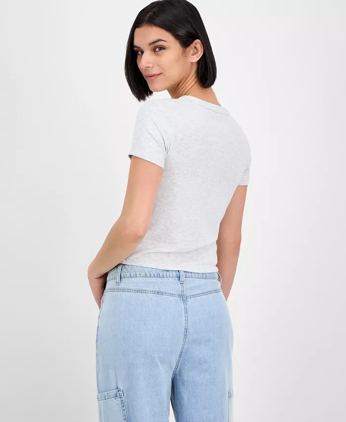 Создавайте лёгкие образы с облегающей футболкой с круглым вырезом от Hippie Rose. Мини-принт спереди добавит забавный завершающий штрих.