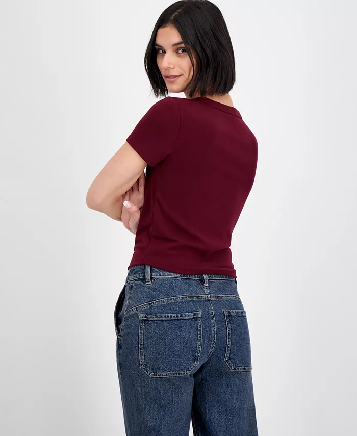 Создавайте лёгкие образы с облегающей футболкой с круглым вырезом от Hippie Rose. Мини-принт спереди добавит забавный завершающий штрих.