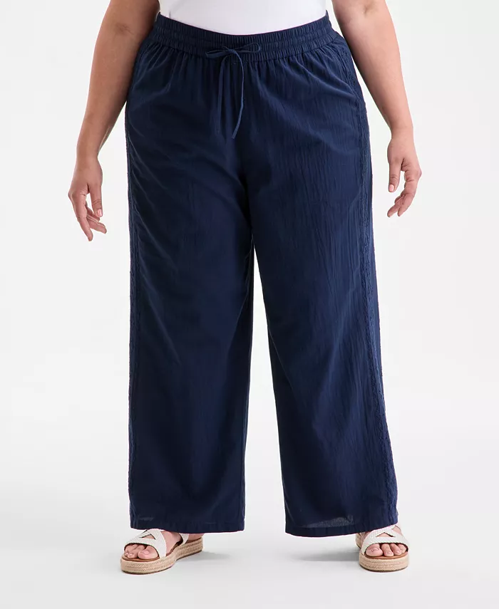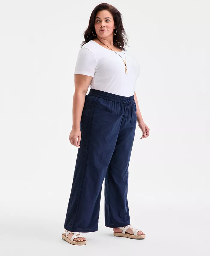 Ощутите непревзойденный комфорт и изысканный стиль в этих хлопковых брюках больших размеров с люверсами и завязками от Style & Co. Это удобная, но изысканная модель, идеально подходящая для солнечных дней.