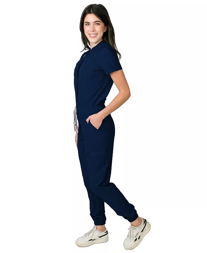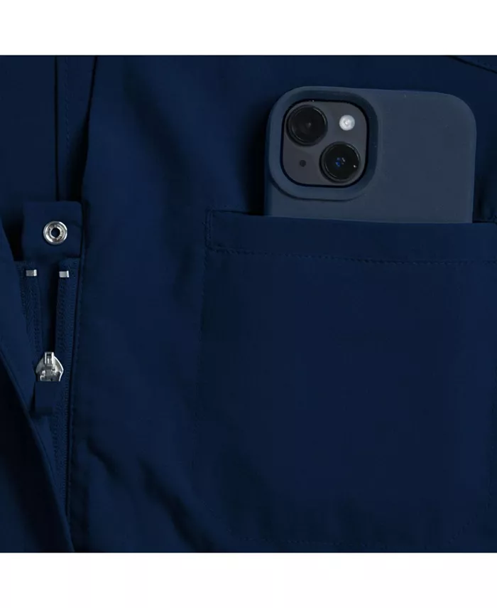 Комбинезон Scrubs с 8 карманами: два нагрудных кармана, два передних кармана на талии, два задних кармана и два накладных кармана (один на молнии, один без молнии). Воротник-стойка со скрытой застежкой-молнией по центру спереди Пояс средней посадки с регулируемым шнурком Присборенные эластичные манжеты на подоле Петля для значка над нагрудным карманом 94% полиэстер/6% спандекс Можно стирать в стиральной машине Импортный