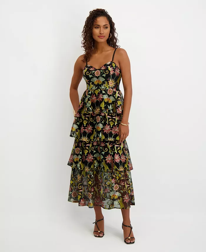 Это макси-платье Siena, представляющее собой идеальный баланс смелости и мечтательности, украшено яркой вышивкой на тонкой ткани, что придает образу свежести и готовности к вечеринке.