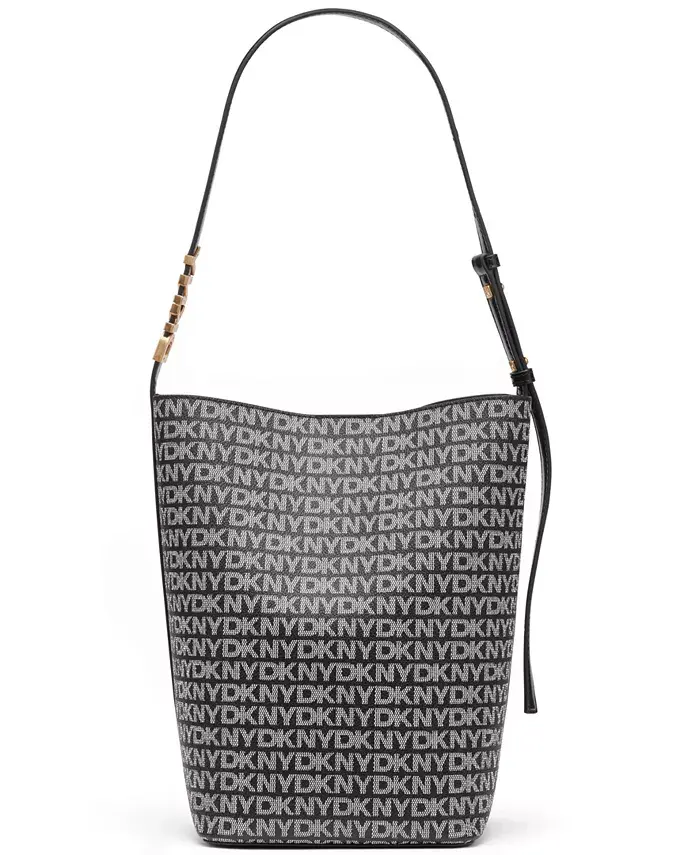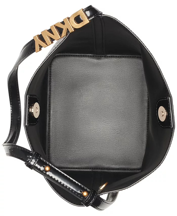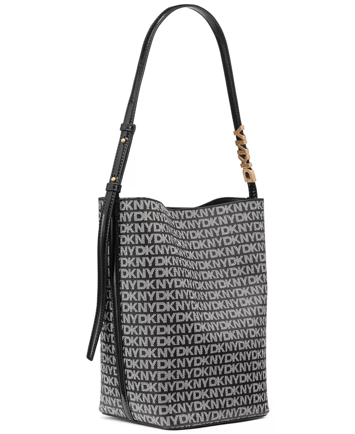 Сумка-ведро Avril от DKNY идеального размера с фирменной фурнитурой, придающей ей культовый вид.